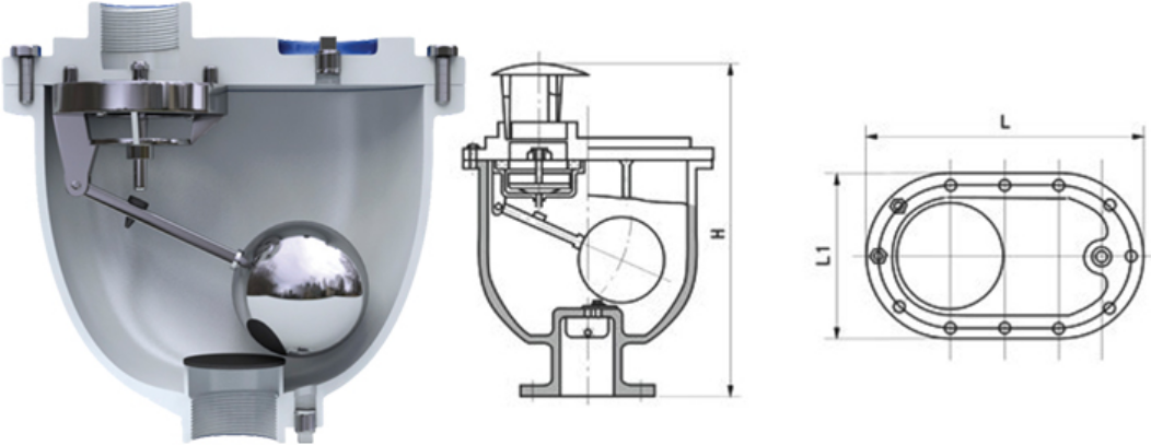 尼科CARX復(fù)合式排氣閥必須設(shè)有二孔一大一小,打孔與通經(jīng)孔基本相等,管道首次通水有大量的氣體往外排,這些氣體從大孔排出。當(dāng)氣體排完后,大孔停止排氣,管道在正常運(yùn)轉(zhuǎn)時(shí),管內(nèi)會(huì)自然產(chǎn)生氣囊體,這些氣體會(huì)慢慢形成變大,會(huì)集中在管道上部,對(duì)管道出水量有一定的影響,這些氣體由小孔解決排除,使管內(nèi)無氣體存在。如出現(xiàn)停電、停泵、管內(nèi)水流空時(shí),隨時(shí)會(huì)出現(xiàn)負(fù)壓。管內(nèi)需要大量空氣,浮球順?biāo)禄蜷_小孔帶動(dòng)大孔進(jìn)行大量進(jìn)氣確保管道安全。