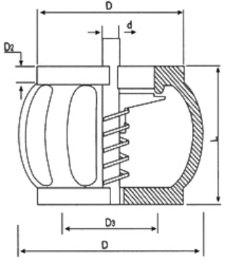 ⑥適用于給排水系統(tǒng),高層建筑管網(wǎng),可安裝在泵的出口處,結(jié)構(gòu)稍加改動(dòng),可做為吸水底閥使用,但不適用于污水管網(wǎng)。