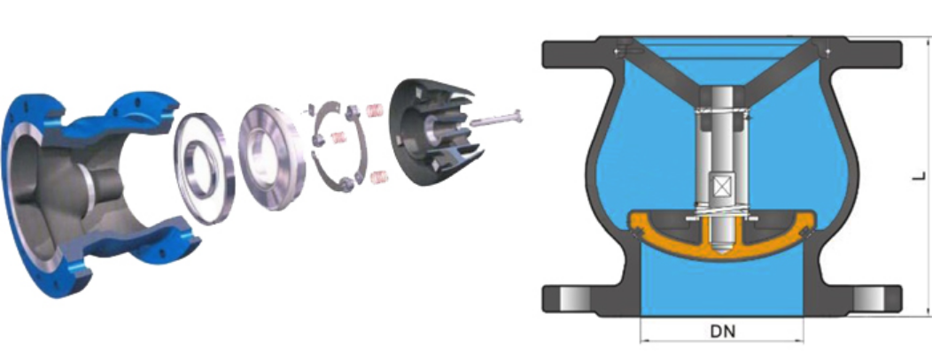 ⑤閥瓣為空心薄殼結構,減少閥瓣的慣性,不但使閥瓣關閉時能迅速啟動,也減少了關閉時的沖擊噪聲;