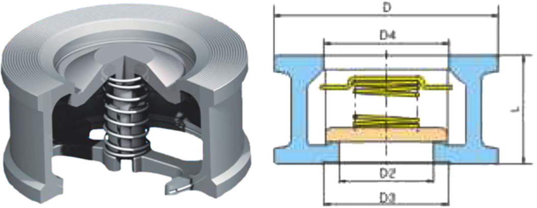 結(jié)構(gòu)長度短,體積小、重量輕,閥瓣關(guān)閉快速,水錘壓力小。