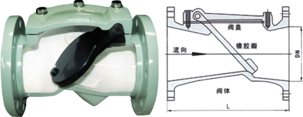 ②閥瓣采用丁腈橡膠與鋼板經(jīng)高溫壓制而成,耐沖刷,密封性能好;