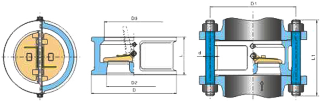 尼科H76W對(duì)夾雙瓣旋啟式止回閥又稱蝶式止回閥,由閥體、閥瓣、閥桿及彈簧等零件組成,蝶式止回閥采用對(duì)夾式,蝶板為兩個(gè)半圓,且采用彈簧強(qiáng)制復(fù)位,密封面可為本體堆焊耐磨材料或襯橡膠,使用范圍廣,密封可靠。