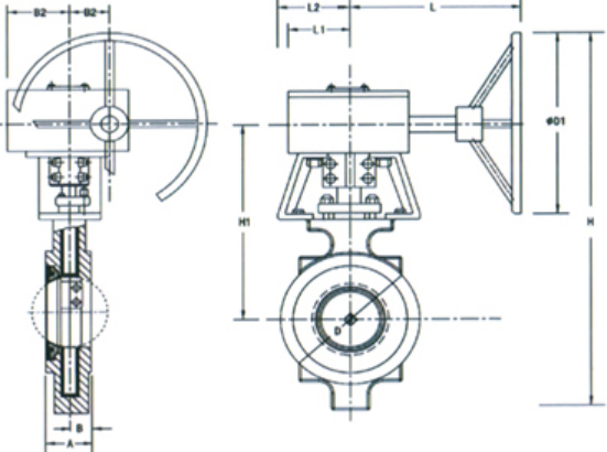 尼科蝸輪雙偏心高性能蝶閥尺寸: