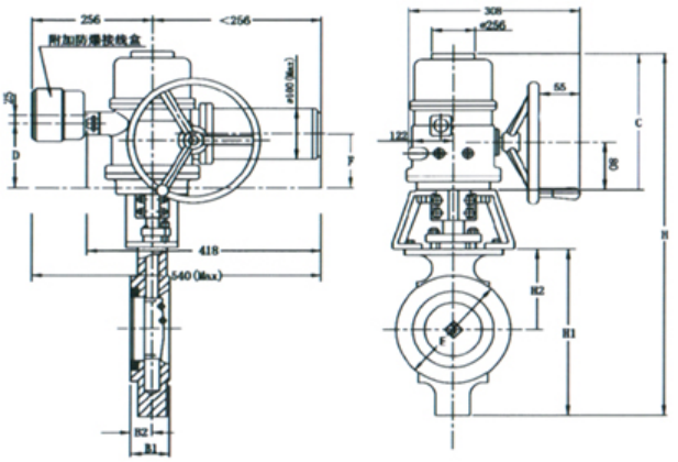 公稱通徑:DN50-DN1200(2"~48") 傳動方式:電動(帶手動)