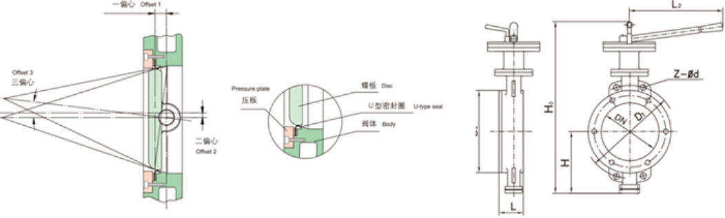 尼科手動(dòng)對(duì)夾式硬密封蝶閥D73H采用一個(gè)"U"型不銹鋼密封圈,內(nèi)部精密的彈性密封圈與經(jīng)過拋光的蝶板三維偏心接觸。解決了傳統(tǒng)偏心蝶閥在啟閉0°~10°瞬間密封面仍處于滑動(dòng)接觸摩擦的弊病,實(shí)現(xiàn)蝶板在開啟瞬間密封面即分離,關(guān)閉接觸即密封的效果,達(dá)到延長使用壽命、密封性能較佳的目的。