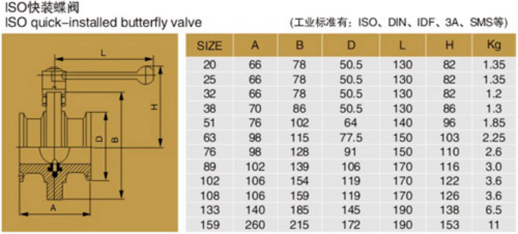 尼科衛(wèi)生級(jí)蝶閥參數(shù):