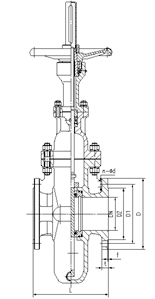 ④關(guān)閉閥門時,順時針轉(zhuǎn)動手輪,閘板下移至底部,由于介質(zhì)壓強的作用,將尼科端密封座推向閘板方向,形成較大的密封比壓,從而形成第一道密封。同時,將閘板壓向出口端密封座上,成為雙重密封。