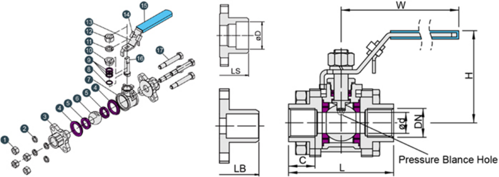 尼科絲扣三片式球閥結(jié)構(gòu):