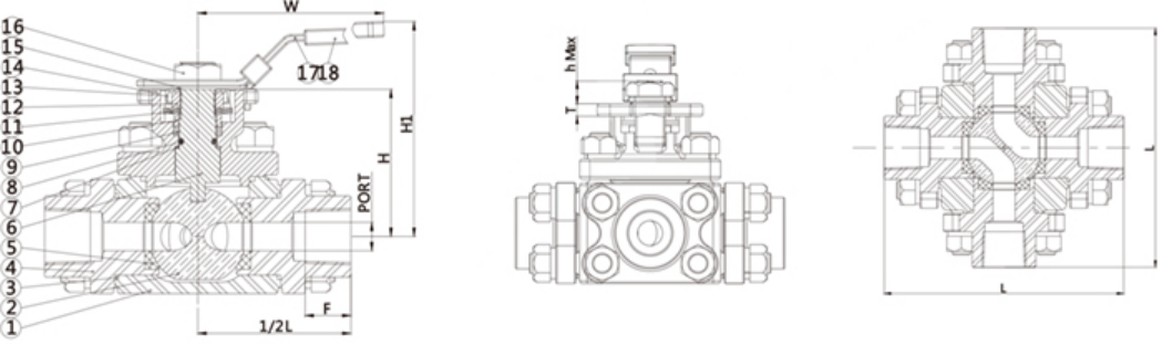 尼科絲扣四通球閥結構: