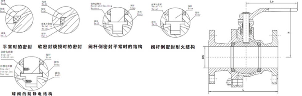 ①耐火結(jié)構(gòu):根據(jù)用戶的需要,球閥可設(shè)計(jì)成耐火結(jié)構(gòu),當(dāng)萬一發(fā)生火災(zāi)而使密封圈燒損時(shí),球閥的各個(gè)密封部位均能形成金屬對(duì)金屬的硬密封結(jié)構(gòu),有效阻止介質(zhì)的擴(kuò)散,防止火災(zāi)擴(kuò)大;