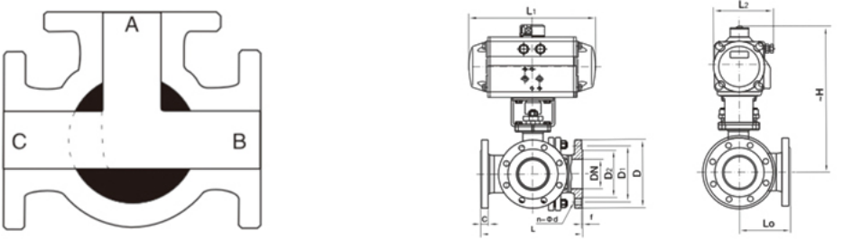 氣動法蘭三通球閥是一種三通道的回轉(zhuǎn)型球閥, 用于介質(zhì)分流、合流及流向切換,任何一個管道都可以作為入口或出口。氣動三通球閥分有氣動三通L型球閥和氣動三通T型球閥兩種,可以滿足不同的經(jīng)營工藝要求。氣動三通L型球閥是對三條管道中的兩條管道進行切斷,氣動三通T型球閥實現(xiàn)把三條連通管道進行合流與分流。