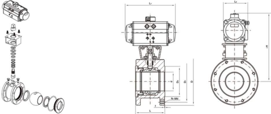 連接方式:對(duì)夾法蘭連接 | 附件選擇:電磁閥、定位器、限位開關(guān)、三聯(lián)件、手動(dòng)機(jī)構(gòu) |