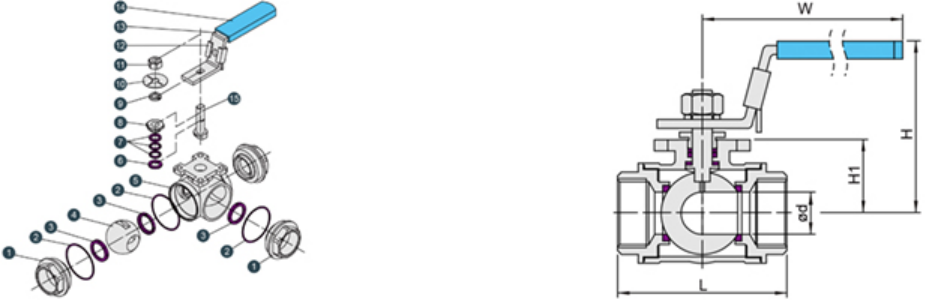 尼科T型/L型螺紋三通球閥結(jié)構(gòu):